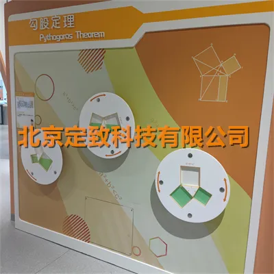 观众互动时,旋转转盘观察液体在容器中的运动,通过直观的现象,了解勾股定理。